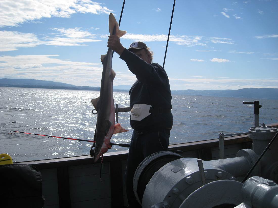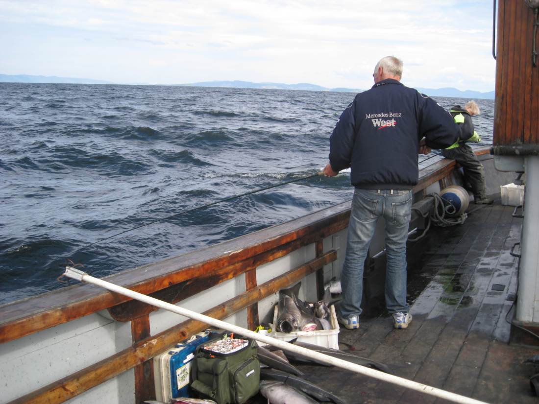 Når nettene blir lange. Sensommeren ebber ut og siste tur før høsten var søndag 19.august . Utror var fra Skansen . Da referenten omkring 945 ankom var de øvrige allerede på plass og tilsynelatende fit for fight. Da pikk og pakk var behørig brakt om bord, gikk turen til området der det lørdag ble tatt mye fin sei. Deltagende var Knut, Thore, Alan, Ole Martin, Arne, Kåre, Karl & co som i dette tilfellet var Runolf. (Båten var TAMPEN I og skipperen Svein Nordhammer). Båt og fører var ny for anledningen og fungerte utmerket. Det skulle vise seg at også denne dagen var seifisket godt . Skipperen var jevnlig ute og spylte dekket på grunn av blodbadet. Etter hvert var det tatt opp så mye at det ble stemning for å prøve seg på langa. Referenten fikk opp ei på drøyt 10 kg, og i tillegg en bra sei så han for seg ei brukbar plassering med tanke på vanlige turer på fjorden. Men dette var ikke en vanlig tur. Det var stadig stigning i programmet . Stadig større langer kom om bord. Det toppet seg da Runolf dro til med et beist med hormonforstyrrelser over 32 kg. Da var de fleste lange i ansiktet. Karl var heller ikke snau og passerte 21 kg med god margin. Resultatlista vil ikke yte fangsten rettferdighet. Til det var fisket for godt, men bilder vil vel vise litt av resten. Lite annen slags fisk kom ombord: Hågjel, svarthå, hyse og torsk. Vel i land dro fangsten mange skuelystne, og det ble levert fisk til China, Færøyene og muligens til Polen. I hvertfall så det ut til at mottagerne kom derfra. Prisen var visst alle fornøyd med. Oldtimeren Ole Martin mente dette var en historisk tur på Trondheimsfjorden. Kanskje var dette dagen i klubbens historie da mest fisk har kommet om bord. De som vet kan jo bekrefte eller avkrefte påstanden. Uansett burde alle være fornøyd med denne turen. Referenten innså etter hvert at han kom til å havne langt ned på resultatlista, men 16,5 kg filet utenom innveide 17 kg som gikk til naboen, var helt greit. |