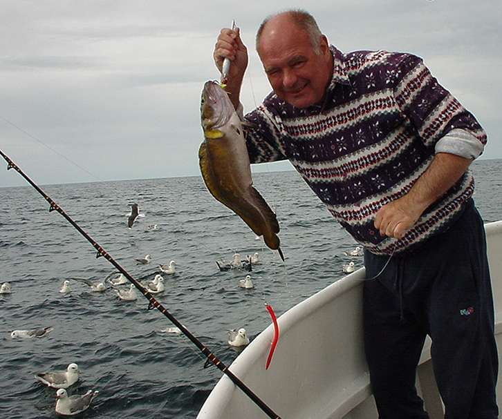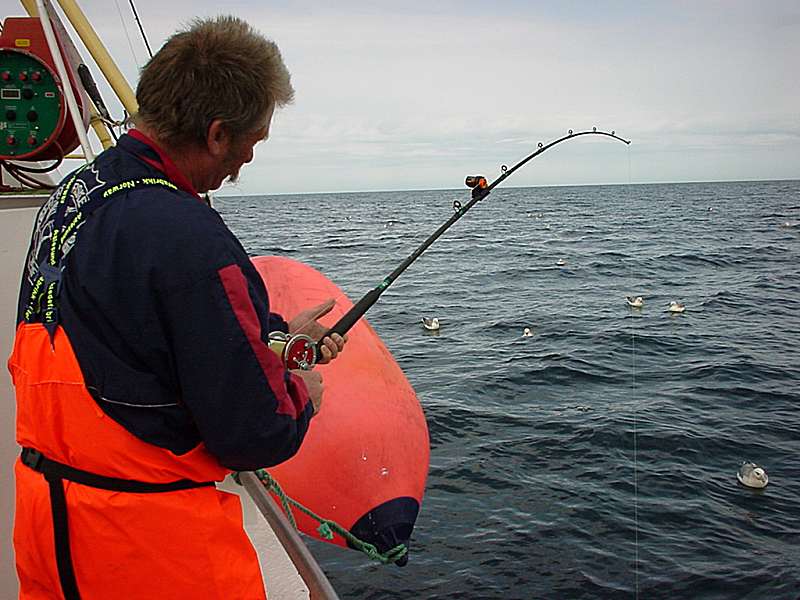 Utgang var satt til klokken 08.00 og alle sammen møtte opp i rett tid. Selv havnet jeg om bord sammen med Sigurd og tre stk. fra Oslo havfiskeklubb. Sigurd hadde vært stor i sneipen kvelden i forveien, etter at han vant turen på lørdag. Men da han hadde vasket munnen sin med noe sterkt, kunne det vel ikke være noen sak å slå han. I samråd med skipperen ble det bestemt å gå ut til Tørrskipet.