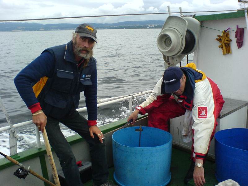 Tekst: Svein Erling Smolan Foto: Knut Nilsen Vi var 6 fiskere fra Trondheim Havfiskeklubb som var påmeldt til denne første høstturen i tynnline. Utror var satt til klokken 10:00 fra Skansen i Trondheim. Været var overskyet og litt lettere regn, men det var vindstille og ”fløan” sjø. Etter ca 15 minutters venting på Allan (som for anledningen hadde sovnet av…) satte båten Tiki med båtfører Gullik Johnsen kursen mot grunnenne utenfor Munkholmen. Klokken 11:10 startet vi på 5 timers fiske. Vi fisket med snøre med bruddstyrke 8 kilo (tynnline) stort sett på dybde fra 15 – 60 meter. Det viste seg at de fleste fisker vikk på grunnen, dvs. ca 30 meters dyp. Vi fikk straks noen sei og senere en masse fin hyse (kolje). Den største tok Allan og den var på hele 2,950 kg. Vi fisket ganske jamt på båten inntil Allan fikk en Lyr på 2,420 og en hvitting på 1,5 kg og rykket ifra. Våre klubbregler går ut på at vi veier inn størst fisk i hver sort. Det ble tatt hele 10 arter (sorter) på båten denne dagen. Av enkeltfisker kan nevnes Ole Martin sin ”brura-pip” en liten lange på 0,015 kg, pigghå på 2,345 og sild på 0,065. Knut Nilsen fikk en stor makrell på 0,885 kg. Sammenlagt vant Alan med til sammen 11,085 kg tett fulgt av Ole Martin med 9,635 kg. Størst fisk denne dagen tok Ole Martin, en torsk på 3,625 kg. De resterende resultater kan dere lese fra regnearket. Den enkelte fisker hadde et sted mellom 20 – 25 kg fisk, det meste var hyse. En masse fin ”ballfisk” fant veien til Kanalgården denne lørdags ettermiddagen. Jeg sto i to timer å fileterte og det ble en masse fiskekaker ut av dagens fangst. Dette var i sum en trivelig tynnlinetur med god stemning og trivelige fiskere og båtfører. Vi ser nå frem til neste tynnlinetur som blir på dag 2 (søndag) i Osen først på september.