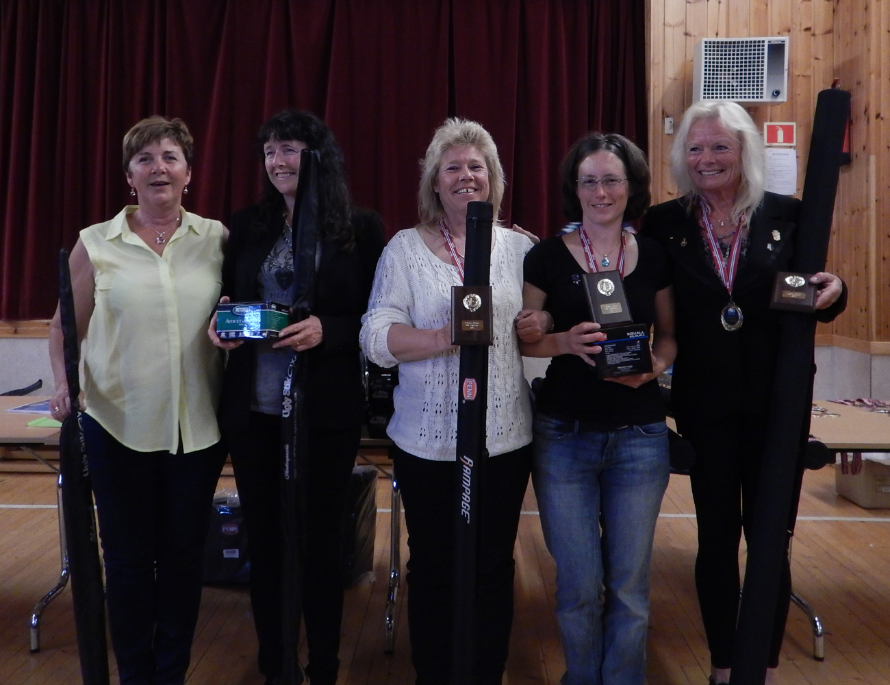 “De 5 beste i dameklassen i NM – Torunn Handeland (Trondheim HK), Hilde Skiffard (Oslo HK), Judith Brommeland (Bergen HFF), Hildegunn Håbjørg (Trondheim HK) og Vigdis Sandvoll (SDSFC)”