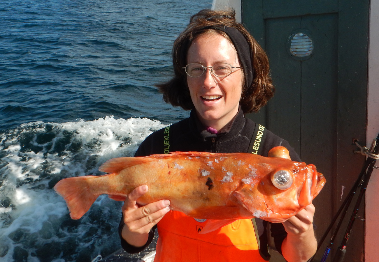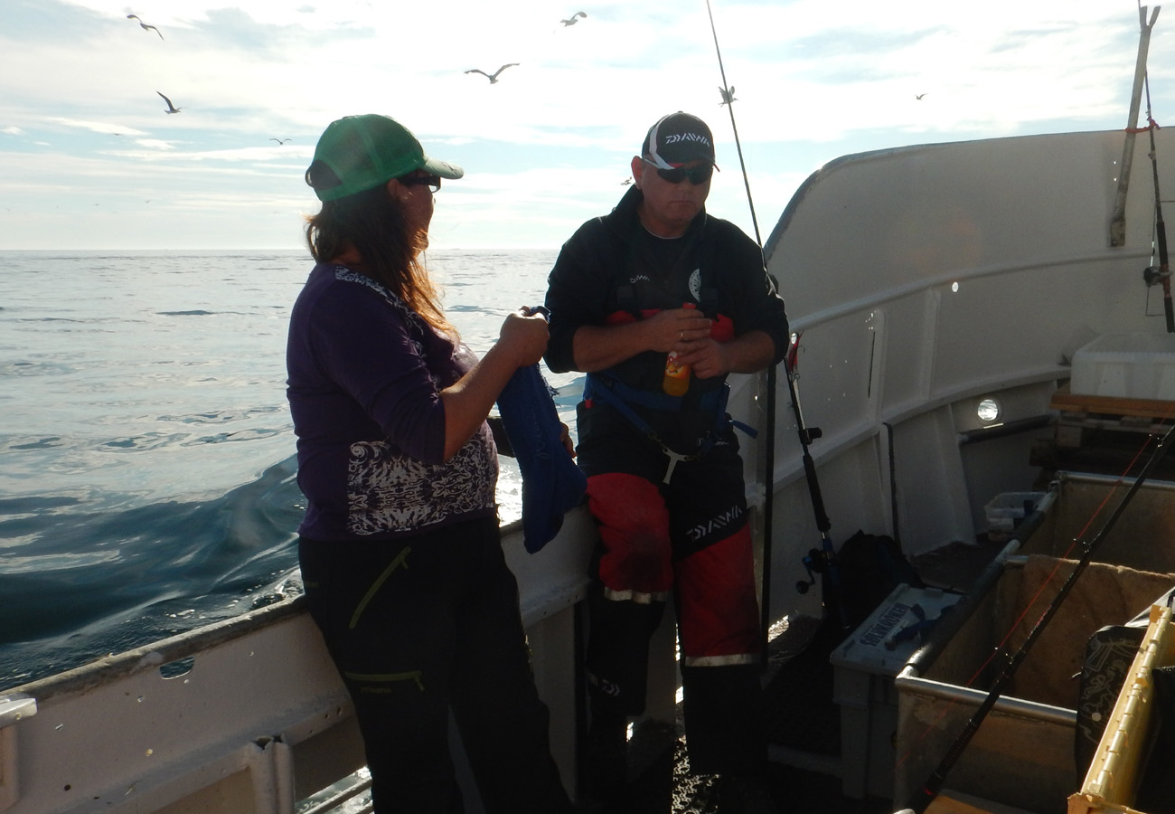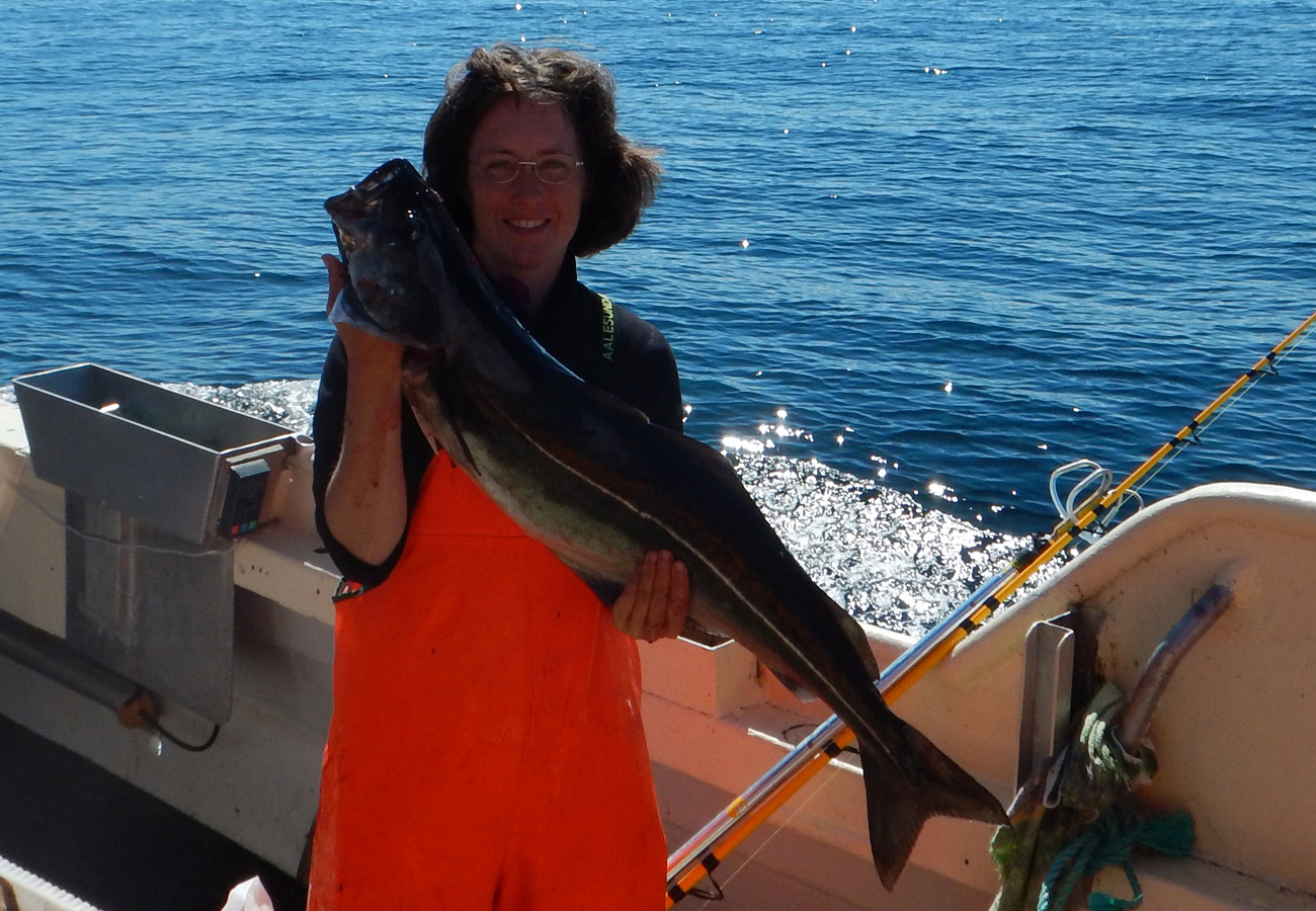 Hun forteller videre at hun byttet pilker og gummimakker/fluer i ett sett for å prøve å holde tritt, men hun “fisket vel mest med svart og hvit sillen og Karmøypilken. Av gummimakk, så var hvit den beste denne dagen.Vi fikk mest Sei, noen Langer og en god del undermåls-brosme. Vi fiska vel på en 100 meter jevnt over. Stemningen er alltid fortreffelig, særlig når vi fikk være med en så god og dyktig båtfører som Roger Iversen! Været var heller ikke noe å skotte på – sol fra nesten skyfri himmel!”