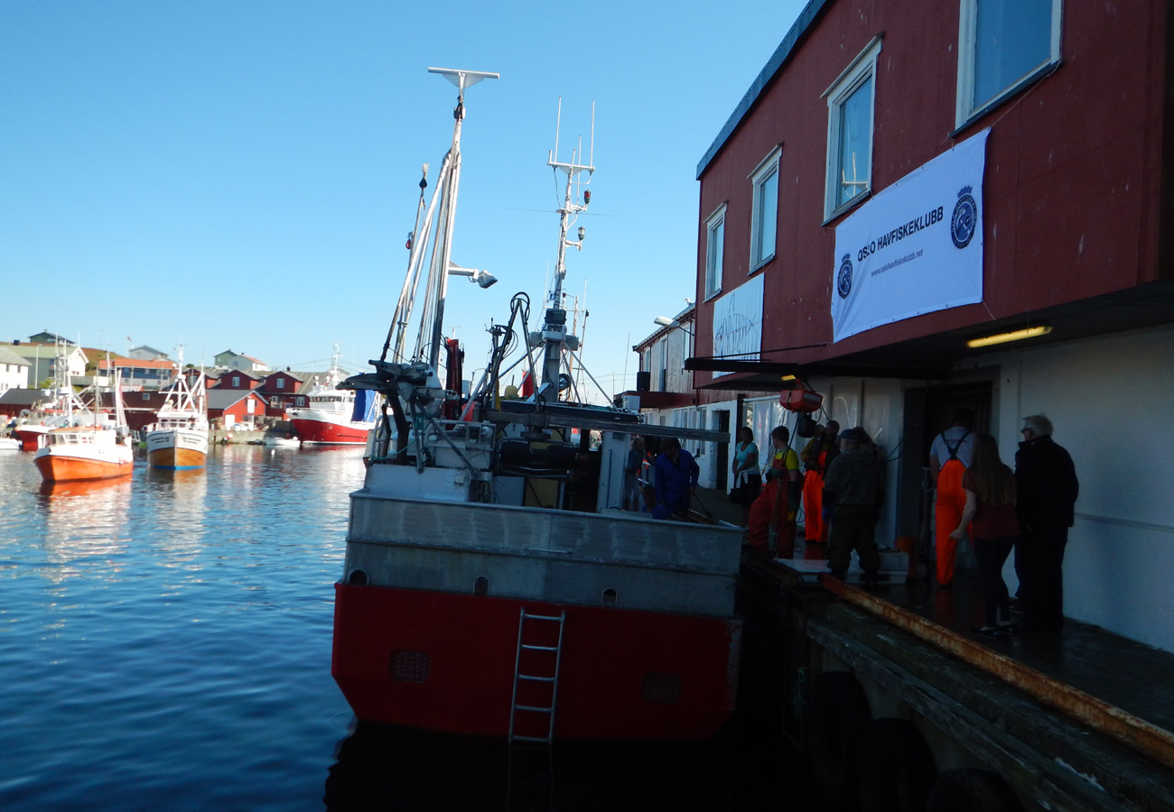 94 fiskere fordelt på 61 herrer, 18 seniorer, 11 damer og 4 juniorer møtte opp på kaien denne morgenen klokken 07.00. Utror var fremskyndet til kl. 07.30, men det var fortsatt god tid til de daglige båtfører- og fiskeskippermøtene, agnsalg og “leting etter rett båt”-prosjekt. Jeg var så heldig at de båtene jeg var med lå nærmest kaien, så det var lett å få utstyret på plass. Andre var ikke så heldige, og måtte gjerne passerer 4-5 båter hvis den båten de skulle med lå ytterst i rekken. Da gjaldt det å ha orden på utstyret under ombordstigningen!