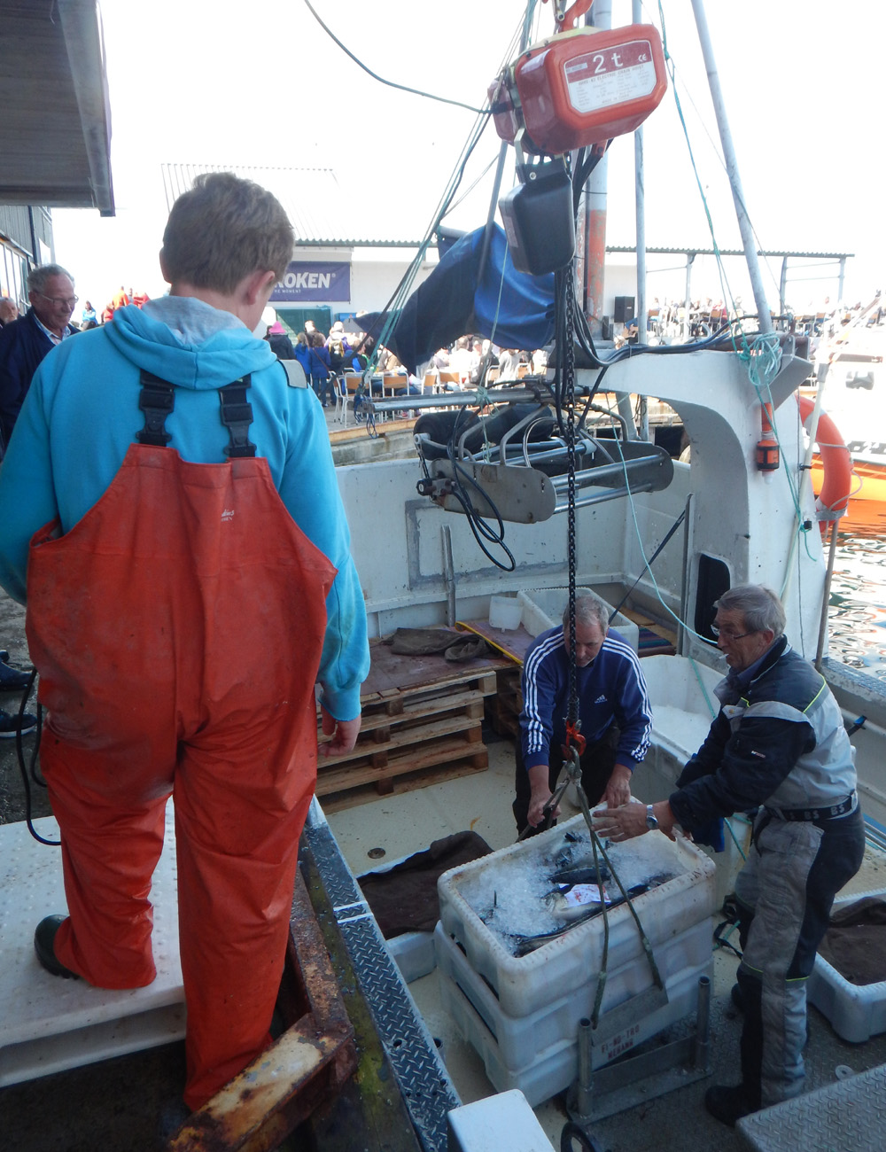 Innveiingen foregikk smertefritt, i alle fall for min båt, som var den første som kom inn til kai… Det var noe ventetid ved veiestasjonen og for å legge til, men det hersket god køkultur, så det var ikke noe stort problem. Mens en ventet, kunne en sette seg ved kaien, hvor det var stelt i stand matservering, bord og stoler, samt en scene, hvor det foruten å bli spilt livemusikk, også ble foretatt høytlesning av resultatene fra hver båt etter hvert som resultatene fra innveiingen var klare.