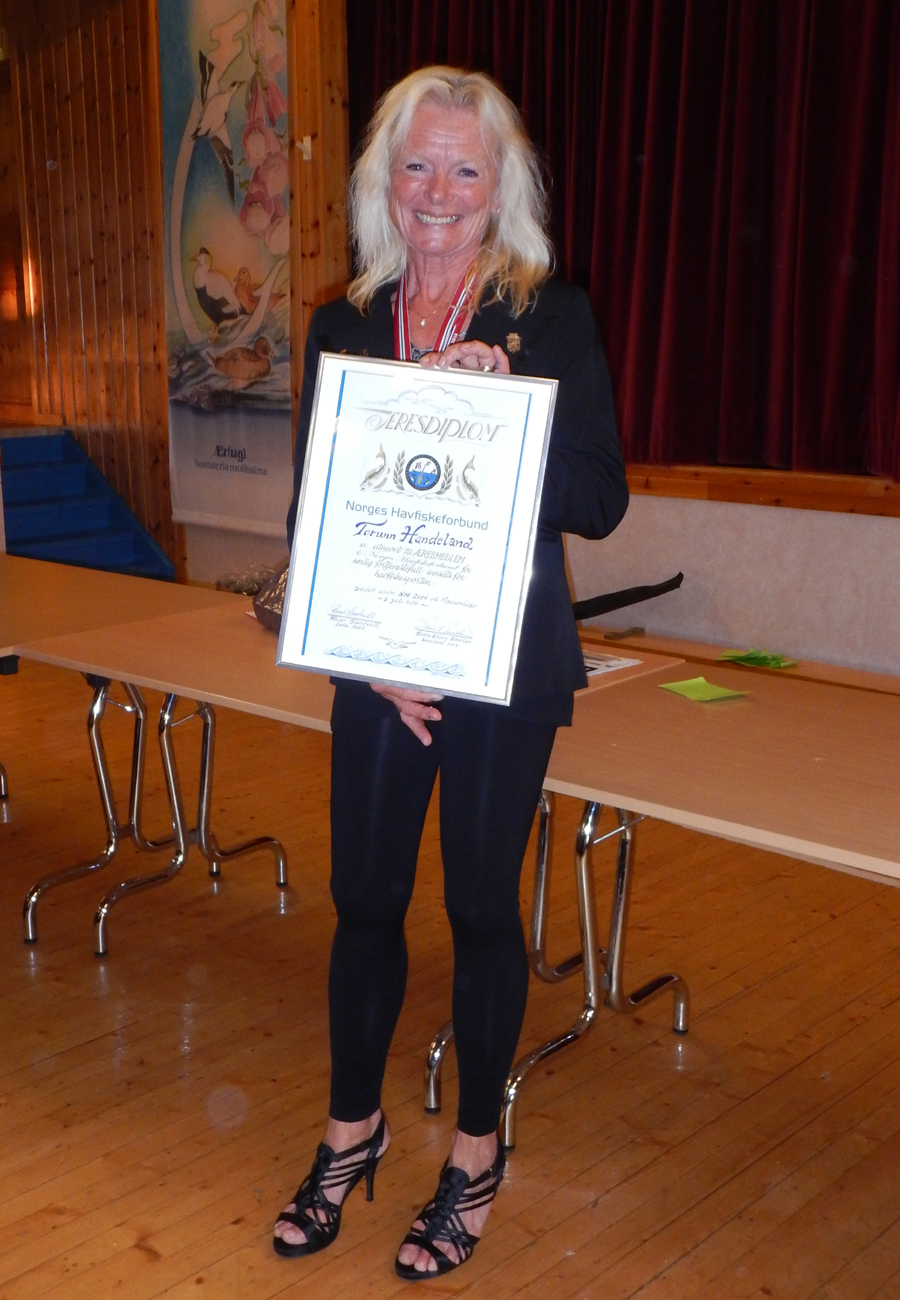 Torunn Handeland ble vinner av dameklassen med 184,3 poeng. Hun var på “Bergebas”, og kunne også fortelle om et effektivt seifiske med doble og triple drag. I likhet med herrevinneren, brukte hun makk og pilk, og betet var best først på dagen. Etter at hun hadde fått 21 sei, gikk Handeland over til langefiske med agn og slep. Hun vant så vidt båten med 6 poeng fra nummer to på båten.